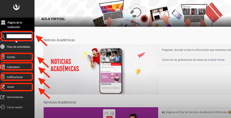 Una vez que hayas ingresado, podrás acceder a una variedad de herramientas útiles en tu aula virtual, entre las que se incluyen: